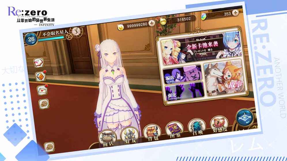 《从零开始的异世界生活INFINITY》是由日本热播动画“Re:从零开始的异世界生活”正版授权开发的全新二次元卡牌养成手游。手游会保留动漫的精髓,还原人物、场景和剧情,并邀请动画cv的原班人马为人物、剧情做全新的配音,在视觉和听觉感受上都达到完美还原。