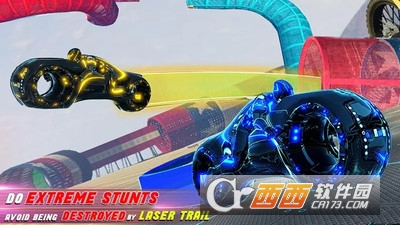 这是一款具有科幻风格和激光元素的摩托赛车的特技赛车游戏,在激光的元素下疯狂展示你的摩托车技巧!并利用你酷炫的技巧打败你的对手!