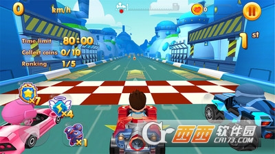这是一款以漫画莱德赛为主题的跑跑卡丁车玩法的赛车游戏。