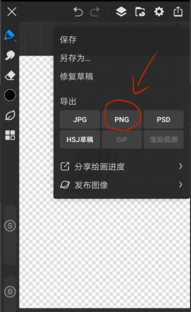 8.App有【JPG】、【PNG】、【PSD】等文件格式,这里点击【PNG】选项,导出的图片就是透明底了