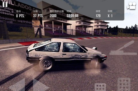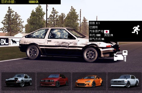 在刚进入游戏的时候玩家只有一辆看起来破破烂烂的车可以驾驶,看起来和《头文字D》当中的AE86有几分相似,不过从这辆车的损坏程度来看,也是非常有故事的一辆车了,看来这是被当成新手车拿来练习漂移了。初始车辆的属性并不算高,玩家可以先利用这辆车熟悉游戏的操作手感,为之后驾驶豪车打下基础。玩家可以通过一场场的比赛获得奖金,再利用到手的奖金解锁出更多的车辆使用,当然了性能越强的车解锁所需的钱也更多,不过对于新手来说也更难掌握。
