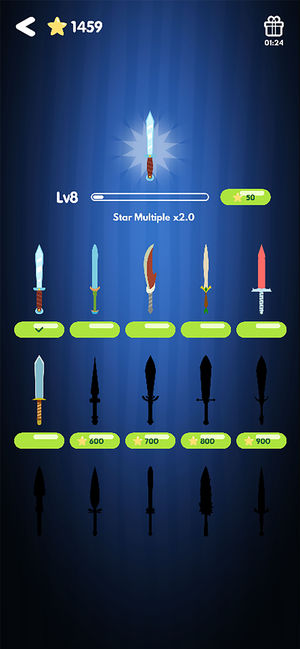 3.各种炫酷飞刀选择,感受不同的操作,带给您精彩刺激的飞刀大战。