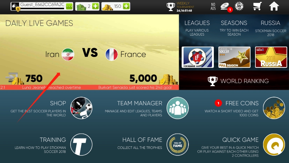 1.独特的图形风格使用简洁的火柴人图形风格,给人一种轻松愉快的感觉,与传统的足球游戏有所不同。2.简单易上手的操作