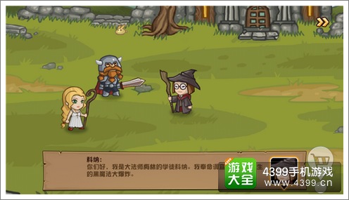呆萌Q版的人物设计,粗线条的淡水彩画面和建筑具有欧式的风格。游戏前期的搭配竟然是呆萌的胡子大叔战士配上美丽的女神牧师、还有一线天眼镜小哥法师,还真让人忍俊不禁!2D的画面在手机上看上去还是相对较为朴实流畅的,游戏前期战斗的表现和人物的动作不算出彩,毕竟人物技能略少,好在这个过渡期很短,精彩马上可以呈现。