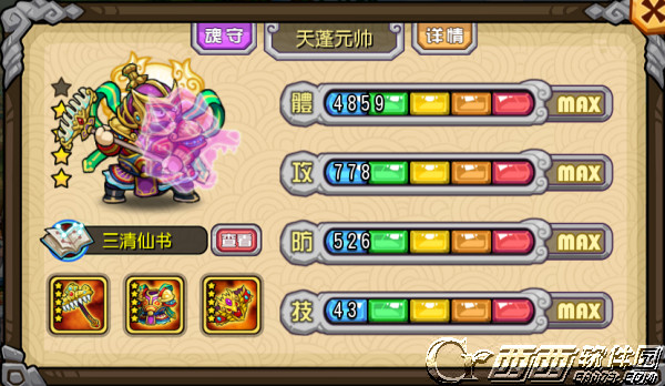 丰富的装备和打造系统完美简单的融合到了游戏中,在游戏中每个神仙都有自己特定系列的装备系统,分成铠甲武器和戒指。当孙悟空有了齐天战甲和如意金箍棒,猪八戒有了九齿钉耙和天蓬战甲,当铁站公主有了芭蕉扇,黑熊精有了金刚般若枪,小白龙有了天龙剑,不仅各个神仙大变样,特技效果也大大加强,想想看我们的齐天大神,天蓬元帅,卷帘大将恢复真身站在一起,对面站着由托塔李天王,巨灵神,哪吒及众天兵天将,画面真是太美太醉人。所有装备都可以继续打造和升级,配合各个神仙的特点,可以把每个玩家的战队战力发挥到最大。