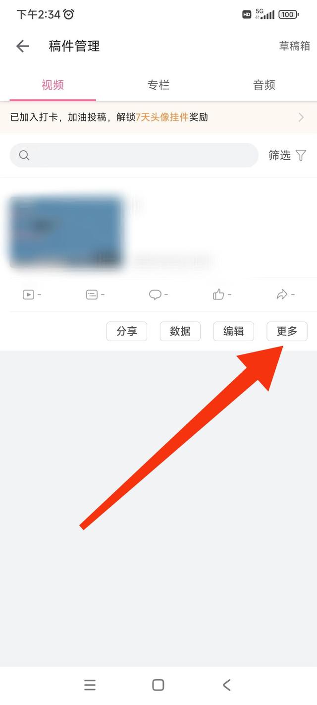 3、随后,在稿件管理里,找到要删除的作品,点击“更多”