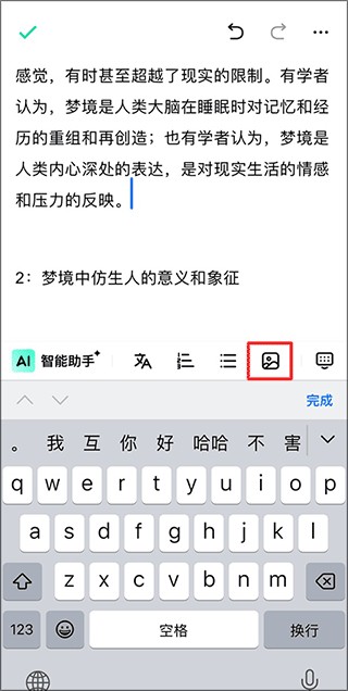 6、还可以在生成的文本中插入图片,将光标放在想要插入图片的位置,点击图标即可;