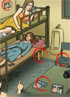 2.初始场景需要找到的物品如下图所示(女生宿舍床头有个小便池这居然不算?)