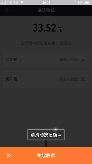 11、把所有的金额输入完成后,你继续滑动下方的发起收款,此时系统会推送这个收款信息给乘客,推送到乘客的APP里乘客就会进行支付。