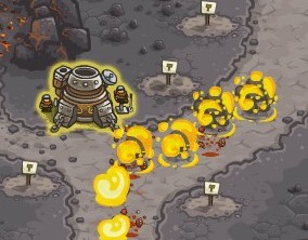 《王国保卫战 Kingdom Rush》又叫《皇家守卫军》,是由乌拉圭的Ironhide Game Studio游戏工作室于2011年制作的一款塔防类FLASH游戏。游戏一经推出即广受好评,游戏媒体将其评价为目前塔防类游戏中当之无愧的王者,之前移植到iOS平台也一致获得好评,现在终于登录安卓平台了。游戏系统的完善细致,对策略性的要求较高,各方面细节表现惊人。游戏有多个主题场景,平原,森林,雪地,冰原,燃烧之地等,根据战争的步伐,你会逐一进入这些不同的战场。游戏提供4种基础单位的防御塔,兵营,魔法师,弓箭和炮台。每种防御塔有三种基础形态和两种进阶形态,并且在进阶形态中,还可以转职为带有不同附加攻击属性的防御塔。