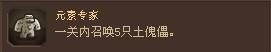 达成方法:点男巫塔的石傀儡技能,一关内召唤5只就行,不用升到顶级。