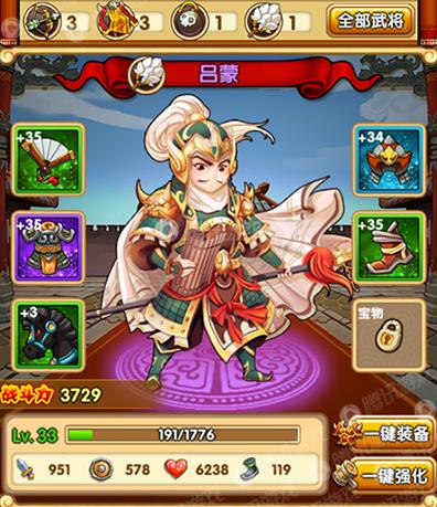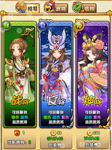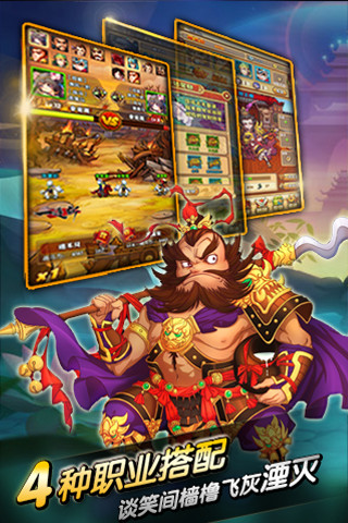 游戏的玩法非常的丰富,剧情闯关副本模式、PVP对战系统、斩将塔以及武将养成系统等应有尽有,充分融合了塔防和卡牌的精髓,并且推陈出新,为玩家奉上了完美的三国盛宴。相信很多玩家都会疑惑,到底塔防和武将两者风牛马不相及的元素,怎样才能完美的结合在一起呢?其实这正是本作的最大创新之处,给玩家带来了眼前一亮的感觉。在本作中一共有四种武将职业搭配,遵循弓军炮法职业顺序循环相克的原理,克制时伤害增加15%。在闯关副本模式中,武将就是防御塔,两种完美的融合在一起。不同职业的武将,代表不同类型的防御塔,每种塔都有两种形态可以互相转换。玩家需要合理的利用,才能发挥出塔防的最大威力,助你推图无忧,满满的都是三星。