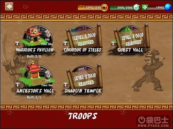 SHAOLIN TEMPLE:少林寺,等级3可以建造。