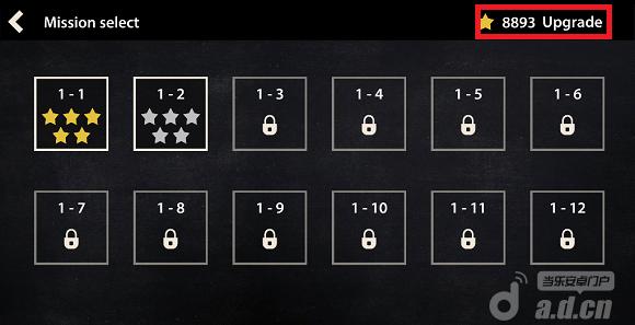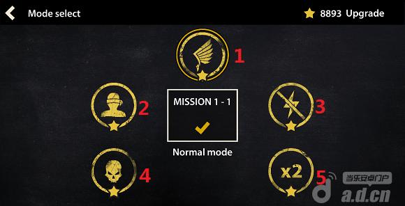 首先进入游戏,到选择关卡这里,我们发现每个关卡下面都有5颗星。这5颗星并不是一次就能拿到的,你需要挑战同一个关卡的5种模式,每种模式一颗星。