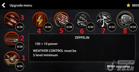 8:飞艇炸弹,指定敌方基地进行打击,需消耗能量。