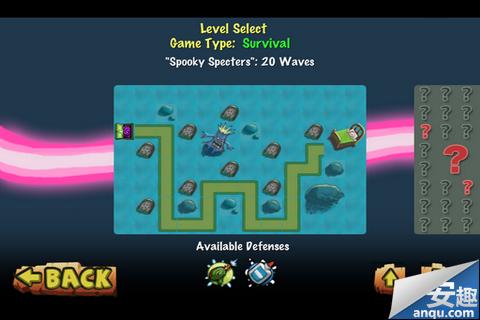 经典模式下的关卡还可以选择不同的通关方式:Survival生存模式、Endurance耐久力模式和Door Buster怪物门破坏模式,用上下箭头就可以切换了。三种模式下的地图都是一样的,不过防御道具和过关要求有很大区别,够大家玩好一阵时间的了。