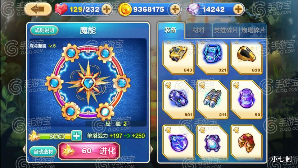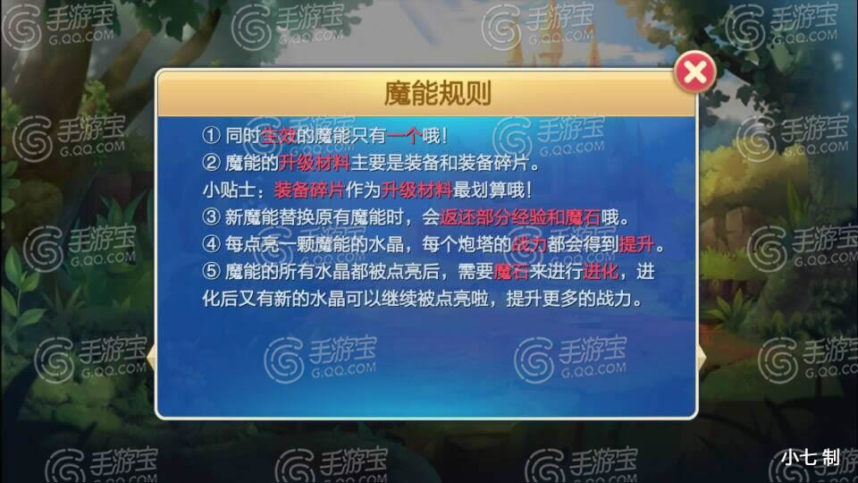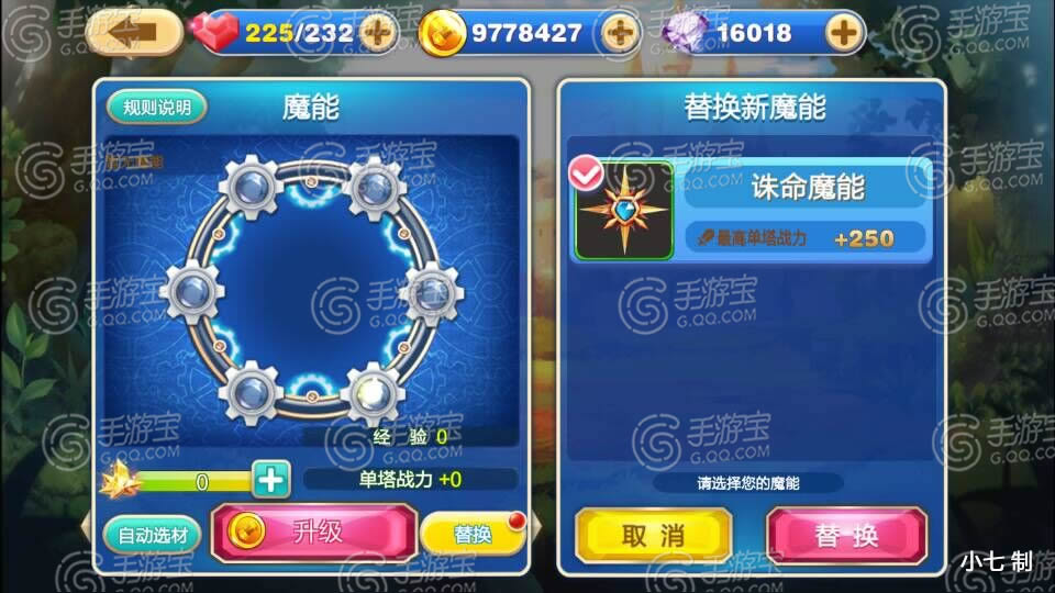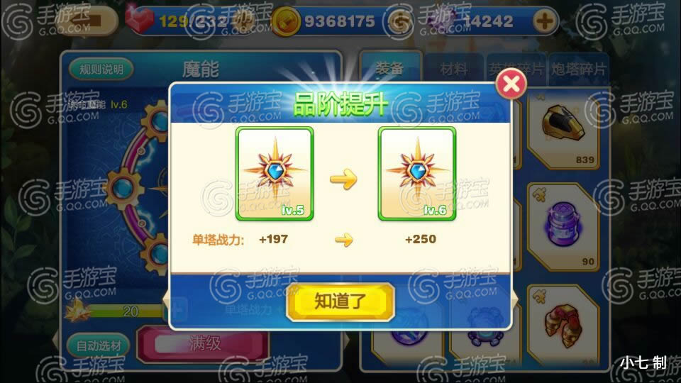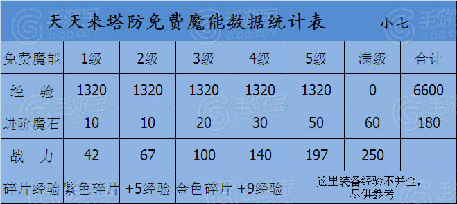 和塔的装备进阶一样,魔能也有对应的品阶进升的战力加成。。