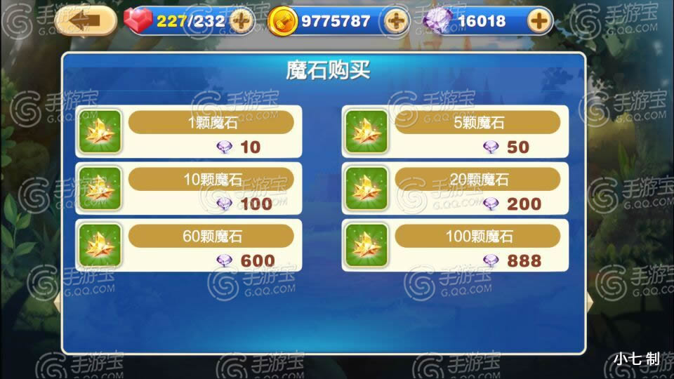 这是魔石的介格表,建议买888钻的100块魔石包。。
