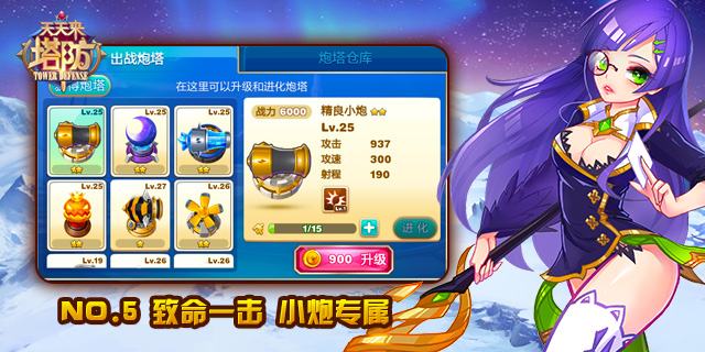 腾讯首款英雄塔防手游《天天来塔防》是一款全新塔防类手游,过图需要炮塔和英雄一起来构建防御措施。英雄作为特色玩法,在游戏中的强大能力是毋庸置疑的,目前游戏推出的16种炮塔除了攻击的方式不同之外,在攻击力、攻击速度和射程三个方面也有区别,整体来说雷光、炎魔、寒霜、飓风和小炮是比较实用的五款炮塔。