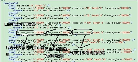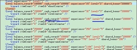 3、township修改第三步,首先说下金币的改法,我们修改的原理是,修改你升级时,系统赠送给你的金币数量。在文件中,找到所有的balabce_reward="X"这种形式的代码,注意里面的X是指数字,将其全部修改为任意数字,建议不要太大,几十万都可以,这样你每一次升级,系统都会赠送给你你修改后的数值大小的金钱数量;