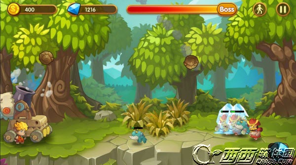 游戏中我们除了使用普通的石头炮弹攻击之外,系统还会给玩家们提供不同的技能武器,例如冰冻弹、钢铁滚石等,玩家们可以在战斗的时候使用这些特殊武器来对敌人进行控制或者造成更大的群体伤害。游戏加入了技能系统,玩家们可以对这些特殊技能进行强化加点,以此增加它们的攻击力,同时在战斗中合理使用技能,能让胜利变得更加轻松。