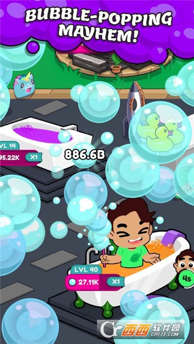 建立数百个浴缸来增加你的泡泡!将古怪的木制洗衣桶,时髦的游泳池和巨大的泻湖填满各种古怪的液体!缔造一个肥皂帝国,开启疯狂升级模式,然后在这个充满泡沫的节日中登上巅峰!