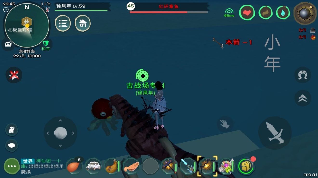 首先大家先得找到红环章鱼(位置在地图四个角的灯塔都有,不过想要过去得花超多时间,157服想要睡袋的可以找我哦)
