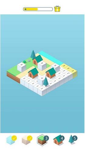 1,屏幕上没有额外的装饰,游戏下方有各种建筑方块可以使用,游戏允许玩家建造自己独特的花园,填写相应的数字。