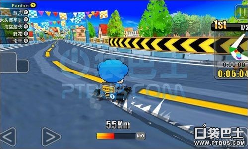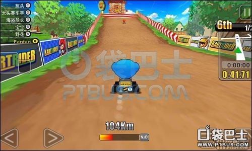 游戏的操作很简单,轮胎痕迹的是漂移键,方格的是刹车两个三角形是转向(重力模式下无此按钮),还有左边其实有个道具栏,在道具赛模式有各种妨碍道具,竞速赛的话下面漂移槽满了后就会增加一个喷气道具,配合漂移后的加速,竞速赛能有个很大的提升。游戏的名次和地图都很直观的标了出来,这个跟PC一样,大家应该都很熟悉了。游戏一开始可能不是很好习惯,但认真玩下来,感觉还不错,当然了现在某些手机都有外接手柄了,完全可以用那个来玩。