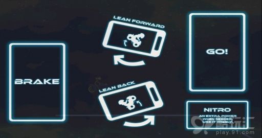 操作方式是重力感应与按键触控并行,左右倾斜手上平版或手机可以控制车体的前倾后仰,点击右半部画面是加速、左半部画面则是煞车,右下角又另有氮气加速,不过氮气必须靠消耗游戏币才能在商店中取得,使用上有限。而不能无限冲刺对于尚未知道底细的关卡来说,并不建议贸然使用以免浪费。