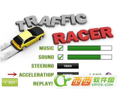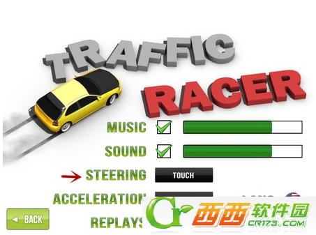 很多小伙伴进入游戏后被重力感应驾驶弄得不知所措,其实移动模式在游戏中是可以设置的。回到游戏最初界面,选择OPTIONS选项,在STEERING中就可以选择TOUCH(左右键移动)或TITL(重力感应移动)。