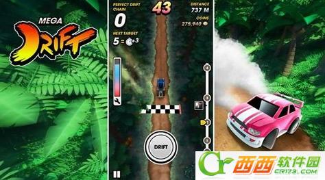 Mega Drift《超级漂移》是一款由Chillingo和Blackbeard Games联合打造的赛车漂移游戏。游戏中,玩家将驾驶各种酷炫的汽车,在各种跑道上奔驰,比如水泥路、石头路、沙土路等等,只有更困难,没有太简单的赛道。当然,本作希望玩家挑战各种弯道,漂移就是本作的王道。玩家在Mega Drift《超级漂移》中,要收集金币,然后避开各种障碍。