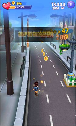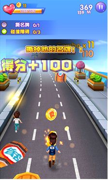 角色会自动拾取当前道路上的道具,例如:金币、体力药水等;角色碰撞到障碍物会损失体力;