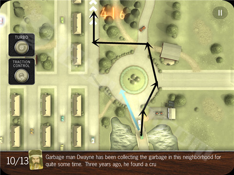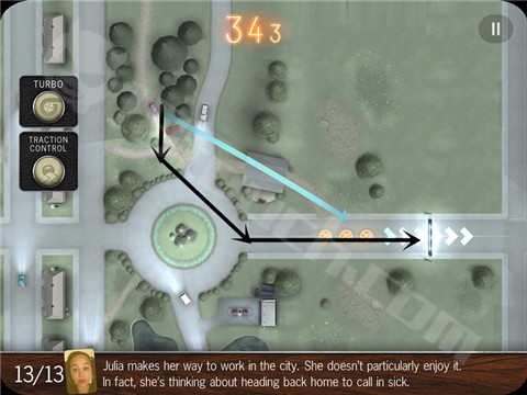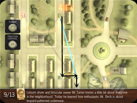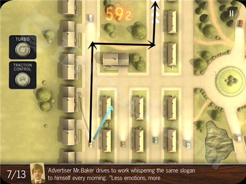 除此之外,还有些似是而非的线索表明这些角色们还有另外不为人知的小秘密等待玩家去发掘。这就是这个奇葩小镇的奇葩人们每天的上班情况,而这一切错综混乱的状态都表现在了交通上,玩家要扮演的就是这个小镇的上帝,在俯瞰角度操控一辆辆汽车,让他们都能安然地到达目的地。