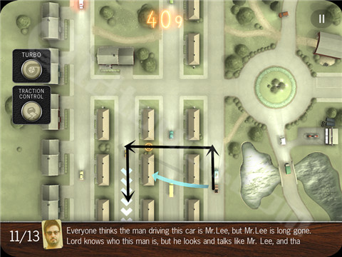 游戏的操作非常简单,只有一左一右两个方向键,玩家每次只需操控一辆汽车,将一辆辆汽车在限定的时间内全部规划完毕,则可以晋级下一关。当然,这一过程是不会简简单单就能达成的,一般都需要试上很多次才能完美通过一关。但这还不是最难的,因为每一关的时间并不是独立的,而是累积下来的。一般每一关开始赠送有60秒时间,其中在场景中还会有很多需要你操控汽车去获得的时间奖励。所以你必须小心谨慎布置好每一辆车,如果撞坏了汽车会减速拖延时间,或者错过了时间奖励,这都会影响到你下一关的可用时间。游戏的付费设定并不是之前猜测的去广告功能,而是付费解锁关卡选择功能,不然你耗尽时间之后只能选择再从第一关开始,直到你的能力成长到一次通过所有关卡。