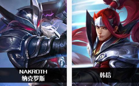 纳克罗斯-韩信,科里纳卡-娜可露露,刀锋宝贝-阿轲,蝙蝠侠-兰陵王,拉兹-不知火舞,莫拉-李白。