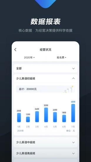 专属定制的移动端智能管理系统。通过规范化的流程和灵活便捷的操作,建立清晰的管理架构,优化机构服务体验,增强机构核心竞争力。建立清晰的管理架构,优化机构服务体验,除此之外,还有试听、老师、课程和报表等专区,实时记录机构运营数据,增强机构核心竞争力,非常实用。
