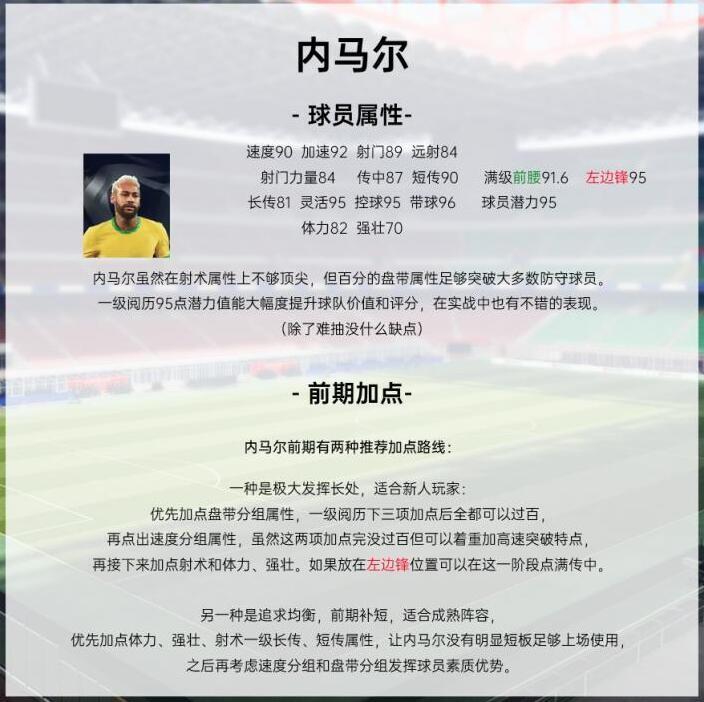 虽然版本推荐是更适合做左边锋,但凭借超强的盘带属性用作前腰也是相当有威胁。