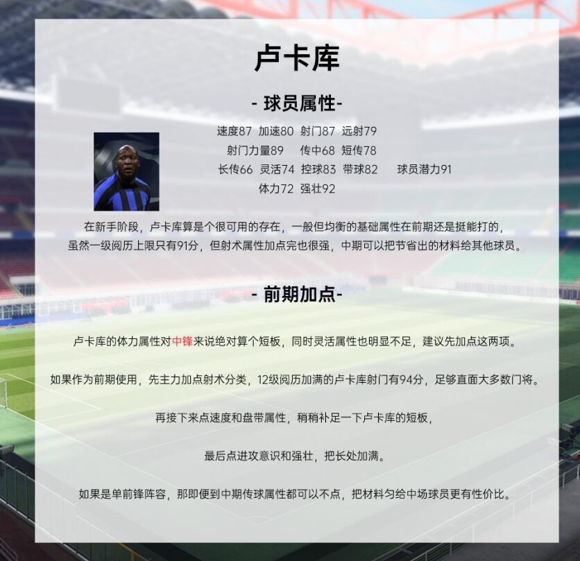如果你觉得上线送的伊布不够用,那选卢卡库是个不错的选择。