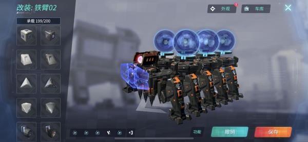 在试炼场地图中与最多六名工程师自由改装战车,负载限制为200(模块限制取决于战车所在车库,默认为多人创造,可使用隐形魔方)。