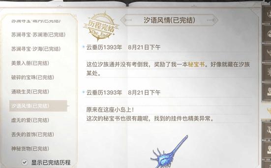 需要完成的任务有:苏澜寻宝·汐海和汐族少女。