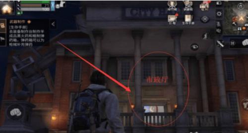 2、之后前往市政厅的二楼,在二楼外面去市政厅屋顶的楼梯上玩家就能看到NPC狂猎女生了。