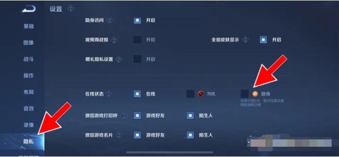 2、往下拉,在隐私模块点击,选择隐身即可!