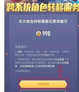 6、需要充值990的荣耀币,可以成功从安卓系统中转移到苹果中。