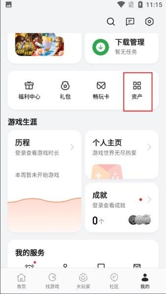 1、进入“游戏中心”APP,选择「我的 > 我的资产 > 消费记录 > 充值」
