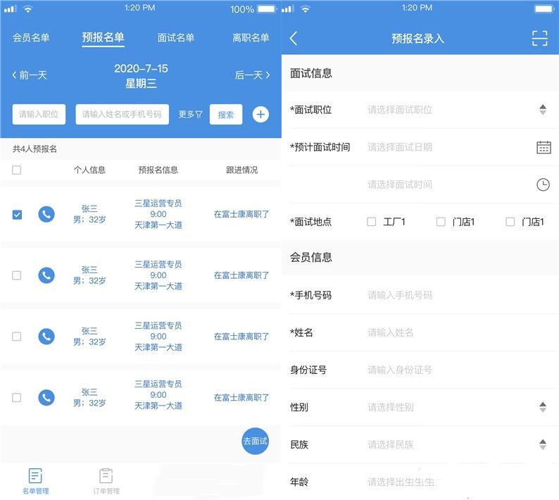 2、你可以将不同用户的信息直接通过手机来录入,随时可以查看他们的求职状态,提高入职率;