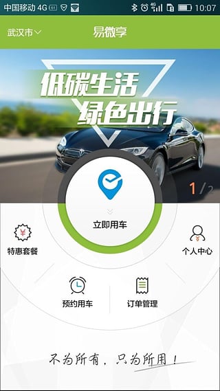 易微享租车是武汉电动汽车示范运营有限公司旗下电动汽车无人自助式分时租赁品牌,结合电动汽车使用的特点和用户的消费习惯,为武汉地区客户提供电动汽车自助式租赁服务易微享租车在Android平台开发的移动客户端租车预定软件,具有自驾预定、手机开关门、自助结算等功能!
