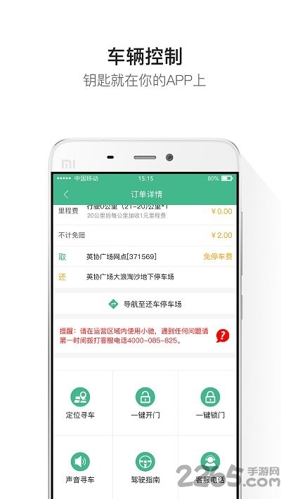 通过手机在线支付、自助取车还车,无需人工钥匙交接,