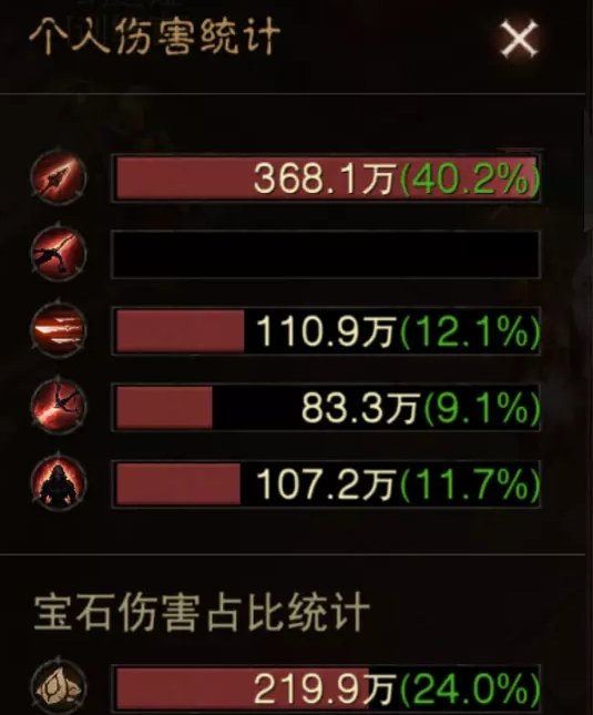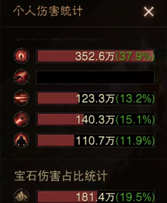 今天给大家用数据来展示猎魔人的PVE流派伤害输出占比,套装是2维图2苦行2魔眼,天赋鬼斧神工,装备词条宝石一样,都是等莉莉丝刷新好测试的。