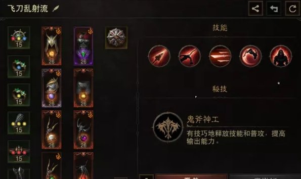 这是之前乱射衣服刚出的飞刀乱射流,也是非常有年代感了,这里既然做测试就想拿出来和现在版本的流派顺便做个对比,并且带上了砰砰弓作为备用副手。这套整体来说伤害在77W秒伤,最高也能到830万,比起主流还是差了点,但比起预期要好很多,喜欢逃脱+绳索双位移的可以玩玩这套。
